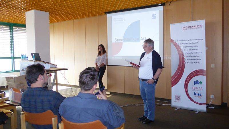 Extra aus Berlin bzw. Freiburg angereist, stellten Sylvia und Jürgen den mehr als 50 anwesenden SHG-Mitglieder den Bundesverband BMAB vor.