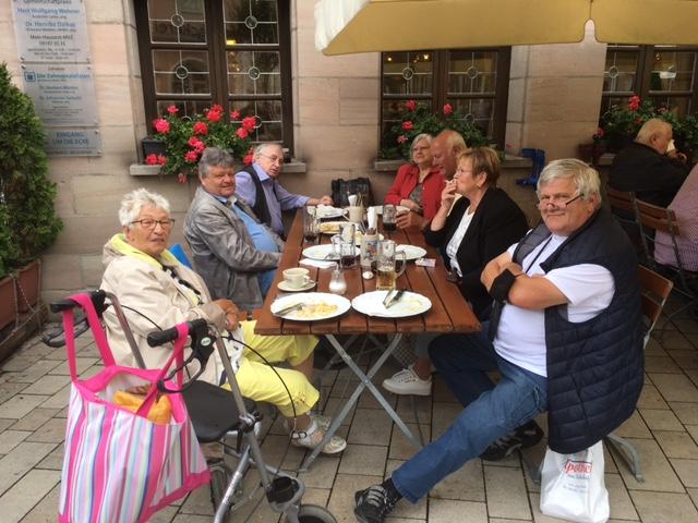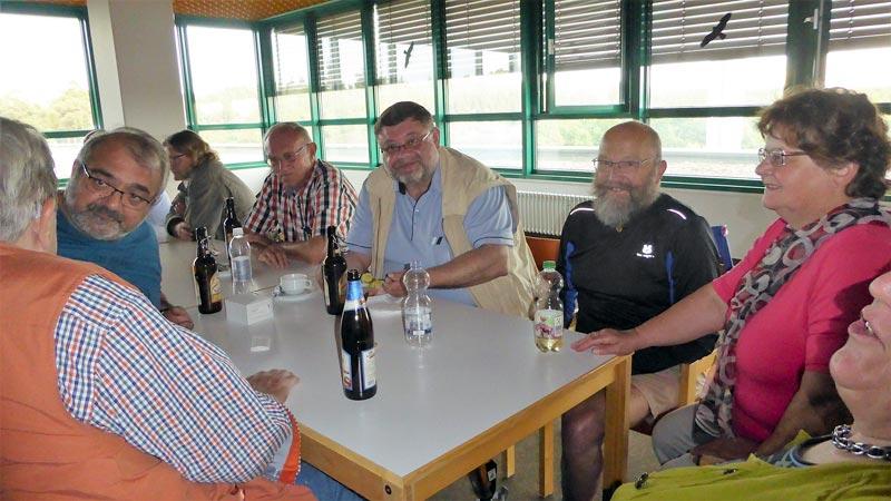 Begleitet wurde dies alles durch eine hervorragende „Sterneküche“ von Gabi und Johannes, die uns mit einem hervorragenden fränkischen Essen, es gab Schweinebraten mit Kloß, Sauce und Krautsaltat, mmh, mmh, mmh, verwöhnten; abgerundet durch eine breite Getränkeauswahl, gesponsert von Gerhard, und natürlich Kaffee mit diversen Kuchen.