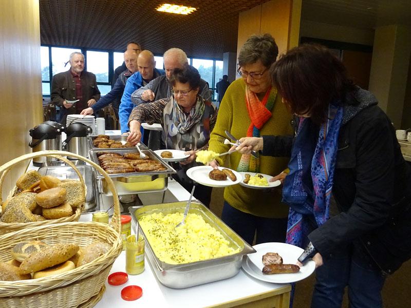 Wie immer pflegte man nach dem Vortrag das gemütliche Beisammensein und den persönlichen Austausch, diesmal mit deftigen Bratwürsten und Fleischpflanzerl mit Kartoffelsalat.